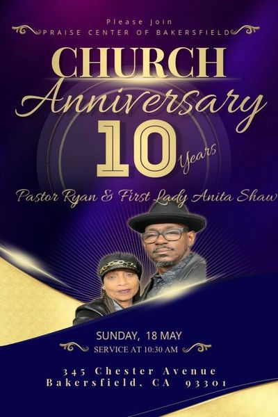 With hearts overflowing in gratitude, we honor Pastor Ryan Shaw and First Lady Anita Shaw for a decade of faithful service, unwavering love, and dedicated leadership to Praise Center of Bakersfield and our community.